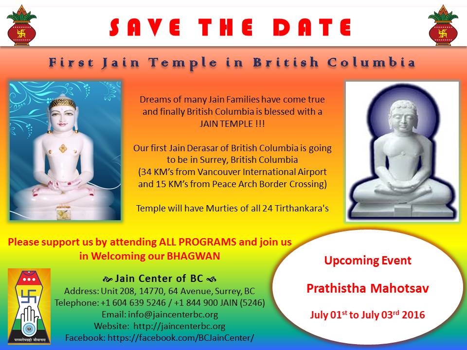 This year we are celebrating our first Diwali on November 11th, 2015, at the new temple and hope you all will be attending on the joyous occasion of Mahavir Nirvan Diwas.